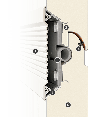 Dank dem einzigartigen Aufbau des 60 mm starken Innovo-Paneels können ausgezeichnete Wärmedämmwerte erreicht werden. Gleichzeitig stellt er eine Grundlage für den Aufbau des Tormantels dar. Spezielle Lösungen, wie das 5-fach gefaltete Blech, gewährleisten eine robuste Befestigung der Elemente, was für mehr Beständigkeit der gesamten Konstruktion sorgt.